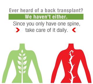Ever heard of a back transplant? Neither have we. Since you only have one spine, take care of it by getting checked regularly!Amplifeied